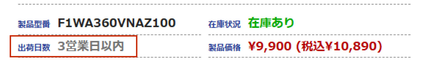 表示されている出荷日数は注文日を含めた弊社営業日(稼働日ベース)です。土日祭日は含みません。
