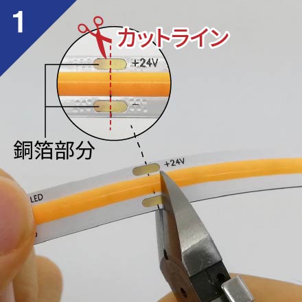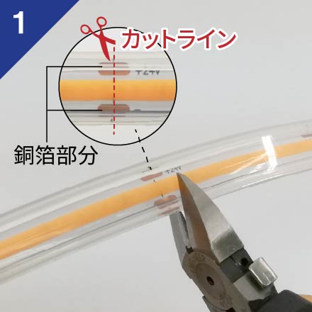 カット後の端面保護を行う場合は点灯を阻害しないよう透明な熱収縮チューブなどを使用してください。