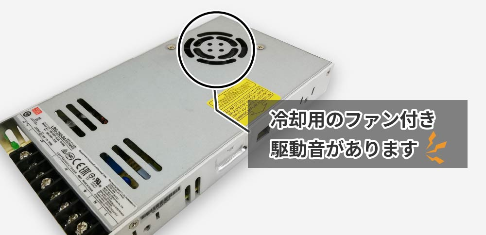 内部温度の上昇に伴い冷却用ファンが作動します。気になる場合は下記の防滴電源を使用してください。