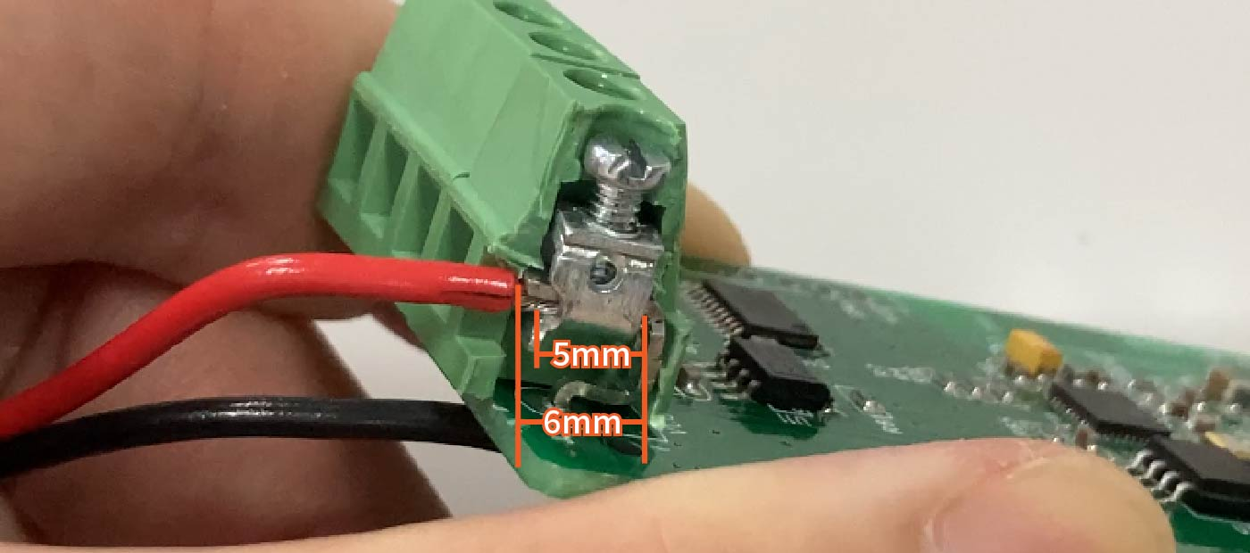 配線取付部の挟み込む接点部は奥行きは5mmです。取り付ける配線は芯線部を最低6mm露出させ、マイナスドライバーを使って差し込んでください。